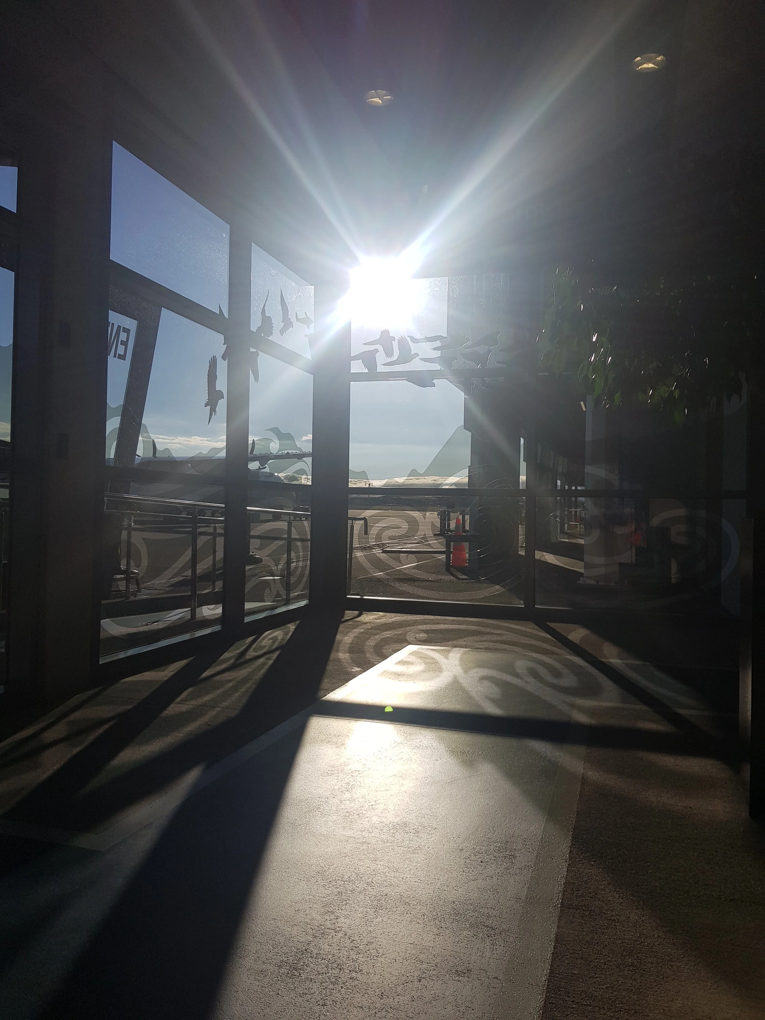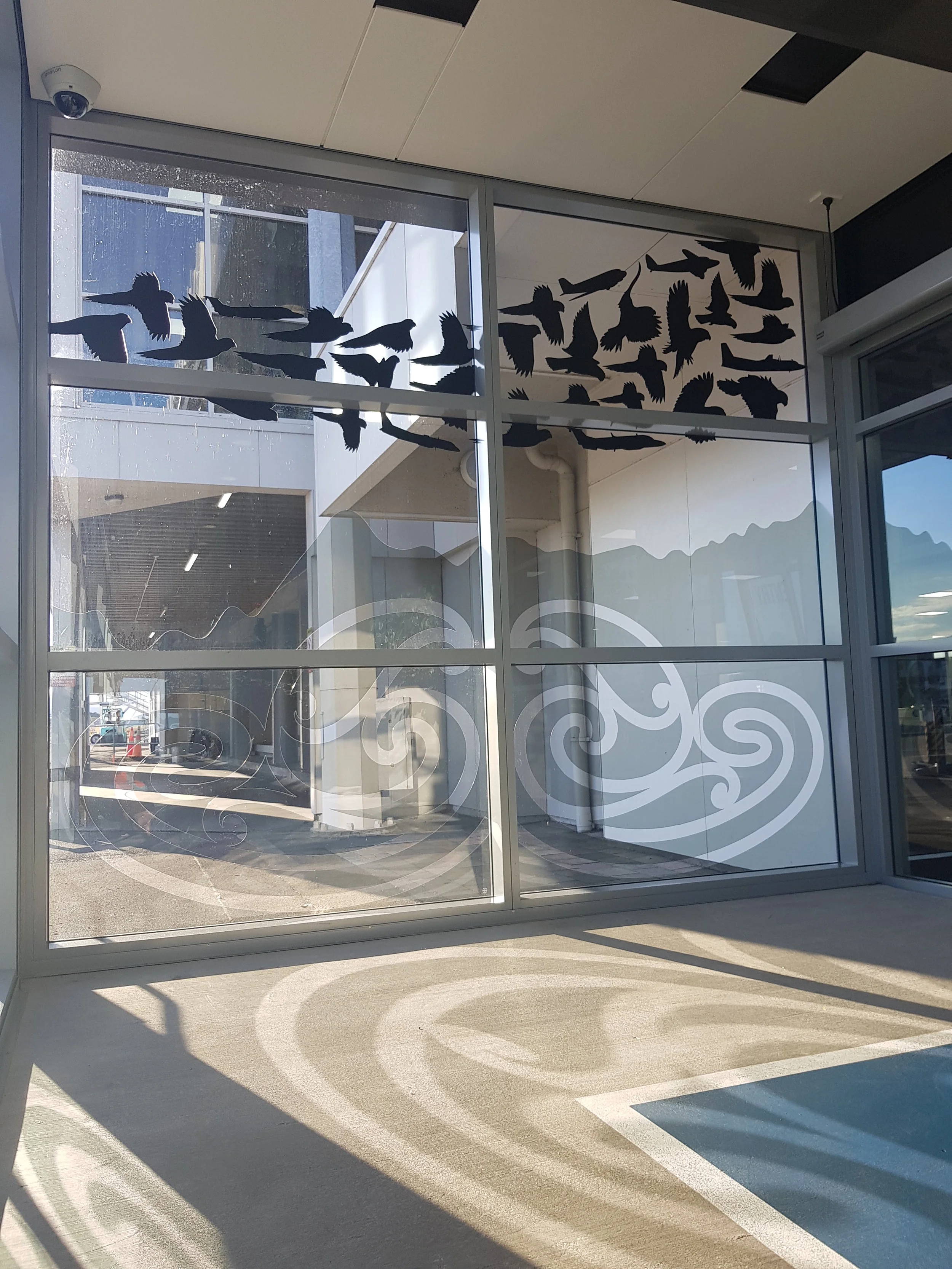 Palmerston North Airport commissioned Awesome Art to come up with a creative solution to there large expanse of plain glass that was still optically clear.